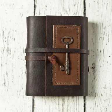 This delightfully chunky leather journal fits perfectly in your hand, making it a great travel journal. Specifications: Journal measures 3.25" x 3....