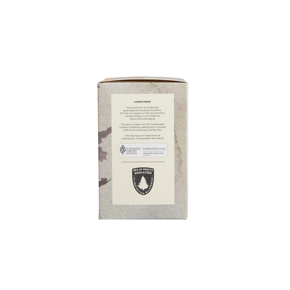 100% sustainably wild harvested Douglas Fir (Pseudotsuga menziesii) needle tips. 20 unbleached bags per box.